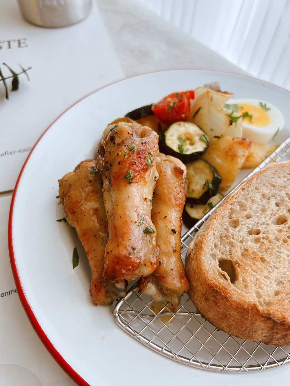 選用蛋白質豐富的雞翅小腿當主角,再搭配櫛瓜、甜椒、番茄、洋蔥一起進烤箱,藉由烤箱代勞,完成後,小孩還肯定有著滿滿成就感!