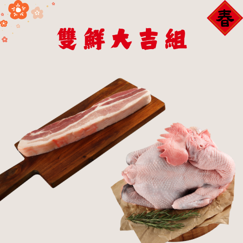 組合內含:全雞2kg*1+附皮五花肉300g*1