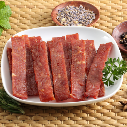 ♦成分:香草豬優質肉品(台灣)、糖、醬油、鹽、大茴香、桂通、花椒、香料、D-山梨醇(甜味劑)、L-麩胺酸鈉、DL-蘋果酸、亞硝酸鹽(保色劑)、異抗壞血酸鈉(抗氧化劑)、醋酸鈉(品質改良劑)、法定食用色素紅色6號 |