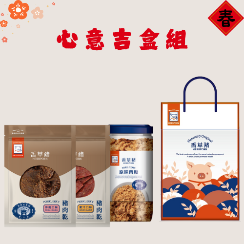 組合內含:原味肉鬆150g*1+蜜汁肉乾120g*1+沙朗肉乾120g*1+品牌提盒*1