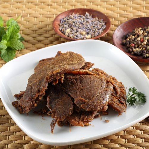 一頭豬最多只能做十包沙朗肉乾,調味帶點微辣。
