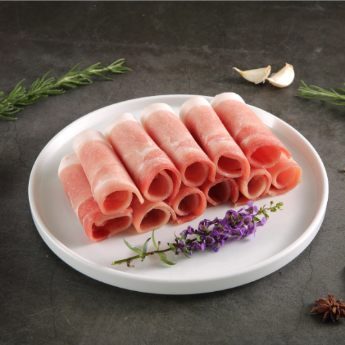 萬用的五花肉絲與適合作為火鍋、燒烤主角的大雪花肉捲片,