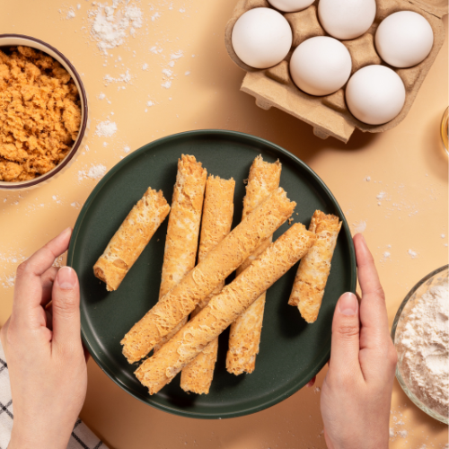 - 全程不添加水,蛋香濃郁、口感酥脆